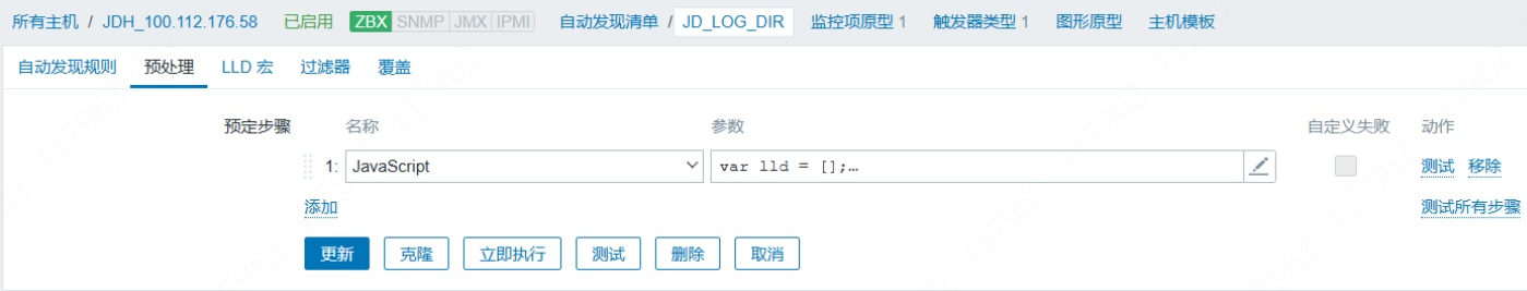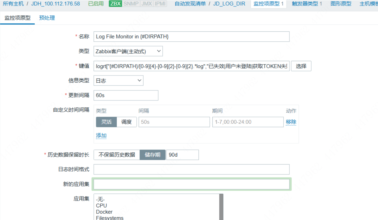 监控项原型和触发器原型根据自动发现规则发现的目录进行监控