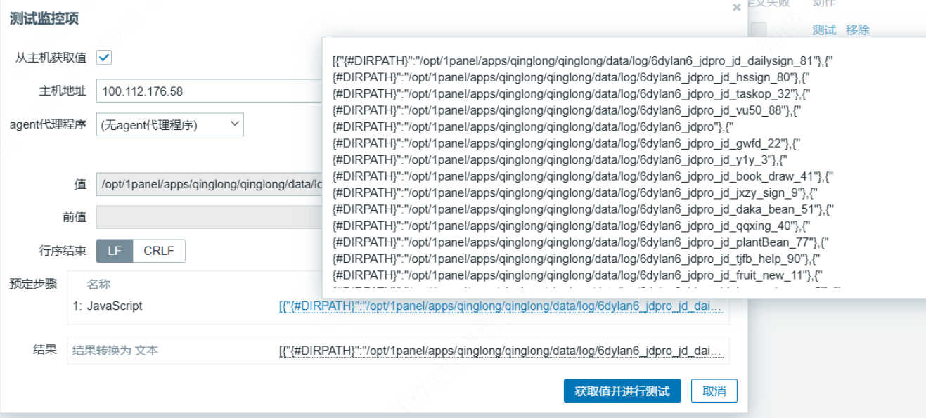 也可以通过shell创建自定义监控来将目录转换为LLD模式,通过创建自定义