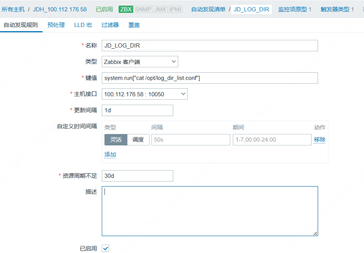 监控项原型和触发器原型根据自动发现规则发现的目录进行监控
